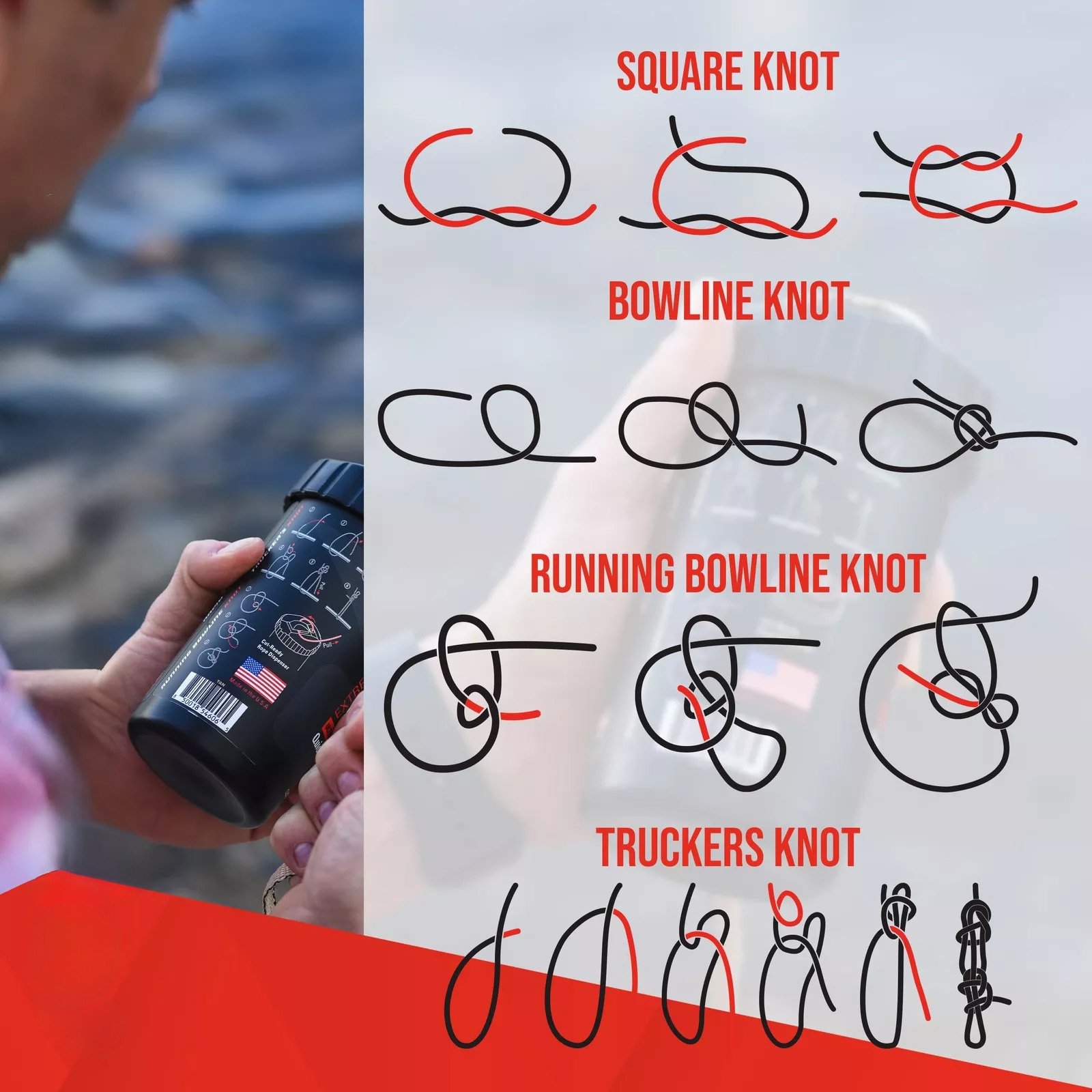 - MULTIPURPOSE AND REUSABLE: For indoor and outdoor use. Rope is perfect for camping supplies, backpacking gear, emergency kits, tie down rope, the possibilities are endless! The canister is reusable. When you run out of rope, just add a Rope refill, and you’re good-to-go.